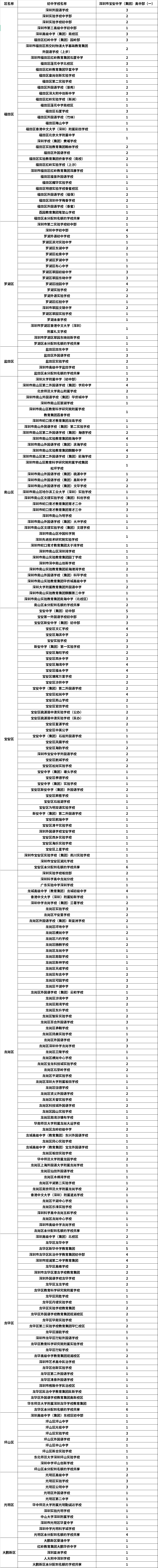 ●名额分配:深圳所有公办高中,50%招生计划按比例分配至全市各初中。