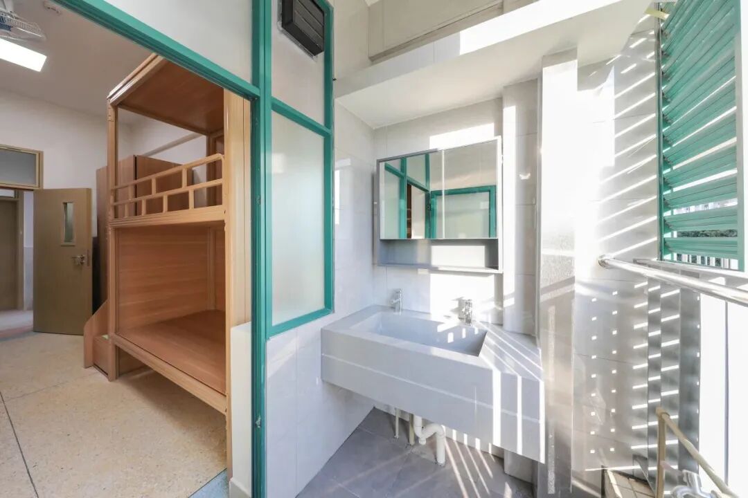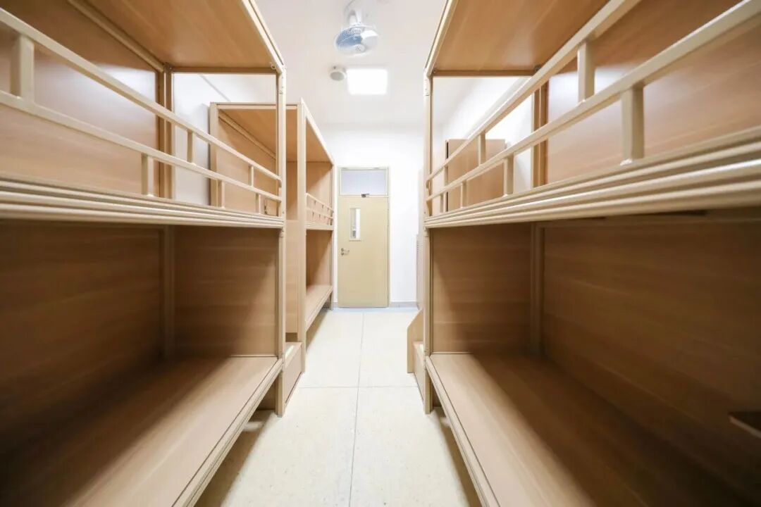 宿舍有4人间和6人间,均为上下铺,每个宿舍配置空调、独立阳台和独立卫生间,拥有24小时热水,此外每层楼还有一间公共澡堂和洗衣房。