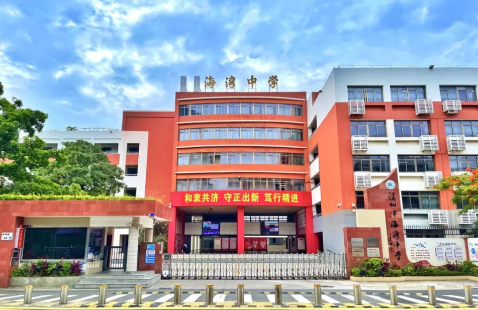 深圳市海湾中学创建于1995 年,占地面积28554平方米,坐落于宝安中心碧海片区,地处中国改革的最前沿——前海中心。学校以“红帆党建”为引领,以“一切为了学生的发展”为办学宗旨,坚持科研立教、特色强校,坚持用“三守”精神立人、思政铸魂,坚持体艺并举、家校共育,形成了“文化之海、和谐之湾”的校园文化。办学业绩不断提升,特色教育硕果累累,是市民口耳相传的身边好学校。