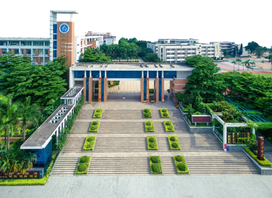 深圳市沙井中学创建于1956年,是深圳市最早的四所完全中学之一,1999年被评为宝安区一级学校,2007年被评为广东省高中教学水平优秀学校,2008年被评为广东省国家级示范性普通高中。校园总占地面积近10万平方米,总建筑面积超7万平方米,绿化覆盖率达45%。沙井中学建校于1956年,有72个教学班,经过67年的沐风栉雨、砥砺前行,沙井中学探寻出了一条遵循自身发展规律,体现办学特色,符合社会人民期待的高质量发展完全中学。