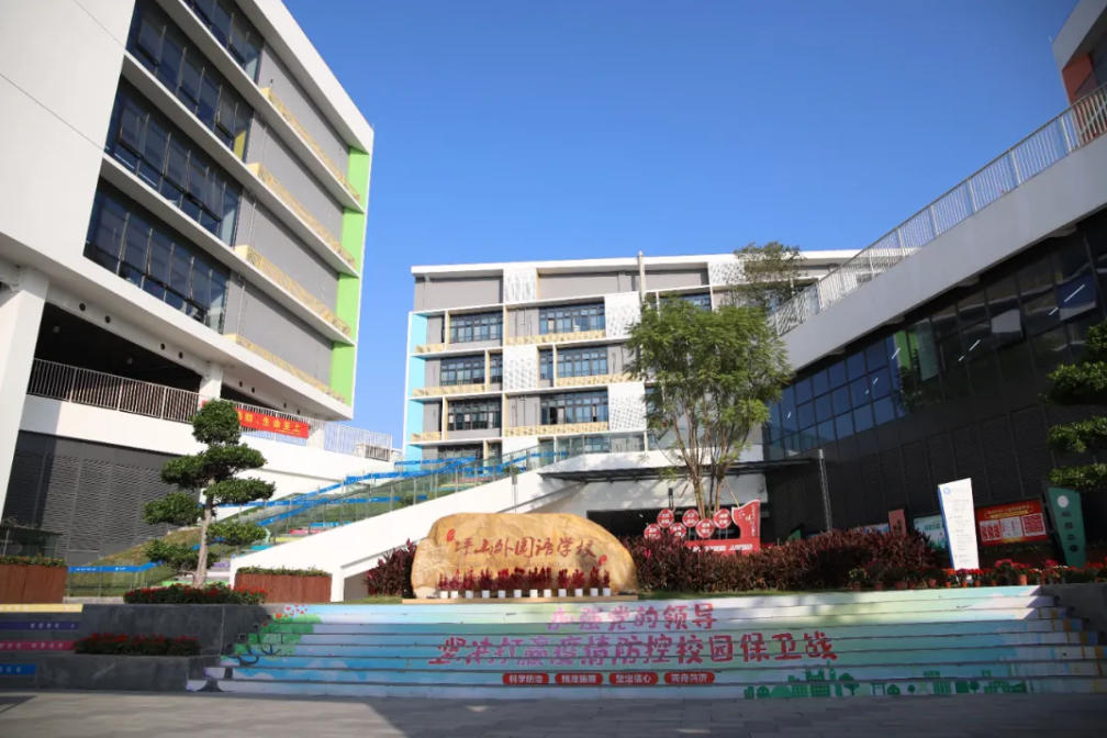 坪山区外国语文源学校是坪山区委、区政府2019年创办的九年一贯制公办学校,是一所具有深圳气质、中国风范、世界品位的新样态学校。学校坐落于美丽的坪山河畔,与深圳技术大学为邻,总建筑面积约7.6万平方米,办学规模为54个教学班,可提供2520个优质学位。