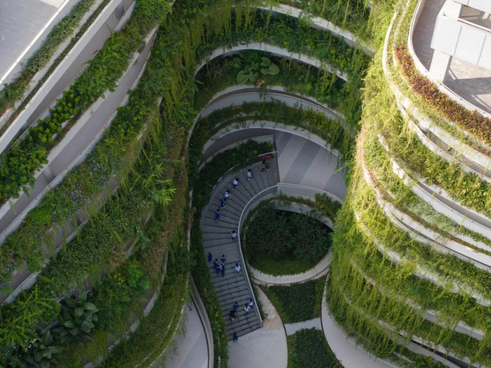 红岭教育集团华富实验学校,是在具有三十多年办学历史的华富小学基础上,全面升级的九年一贯制学校。2023年9月学校迁入全新校址,位于福田区环中心公园活力圈,被称为深圳中心未来家园、城市新标杆的“山海融城”华富社区。学校占地面积2.45万平方米,建筑面积7.25万平方米。校园设计采用“融合共享·花园中心”的理念,以花园为基底,构建层次丰富的景观布局,打破标准化的教学空间单元,为师生提供亲近自然的花园式学习场所。