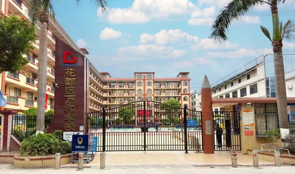 广州市花都区万和学校隶属于广东龙涛教育集团,是一所高起点、高品位、高质量的民办外来工子弟学校。学校办学设施设备、功能场室一应俱全,可满足学校正常的教育教学需求,校园环境优雅,具有浓郁的文化氛围。学校创办于2014年8月,位于广州市花都区狮岭镇中心城区,背靠广清高速公路,毗连中国皮具之都——狮岭国际皮革城,地理位置优越,交通十分便利。