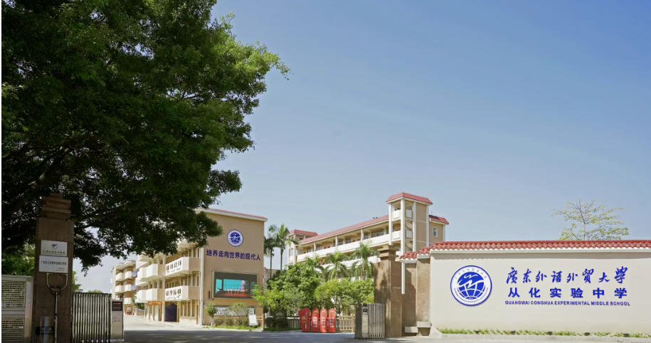 广东外语外贸大学从化实验中学位于广州市从化区太平镇,南临105国道,北靠流溪河,东邻逸泉山庄及高速公路出入口,距广从14号线地铁站口500米,距市区5公里,交通便利,地理位置优越。校园占地面积78亩,建筑面积14300平方米,可容纳1600名学生(40个教学班)。现有教师82人,学生716人。是自2021年8月起,从化区政府、从化区教育局与广东外语外贸大学合作举办的一所公办初中。因此,学校由原来的“广州市从化区神岗第二中学”更名为“广东外语外贸大学从化实验中学”。