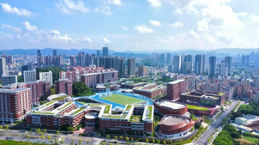 深圳外国语学校高中园是深圳市教育局直属事业单位,由深圳外国语学校(集团)全面管理的全寄宿制公办高中园区。园区位于光明科学城中心,紧邻南光高速、龙大高速、外环高速,双地铁6号线+13号线站点临近园区,通学定制巴士线路站点覆盖深圳市所有行政区。园区采用以“云”为母题的庭院式半围合智能化共享设计理念,宁静雅致,功能齐全,视野开阔、高端、大气,实现共建共享。